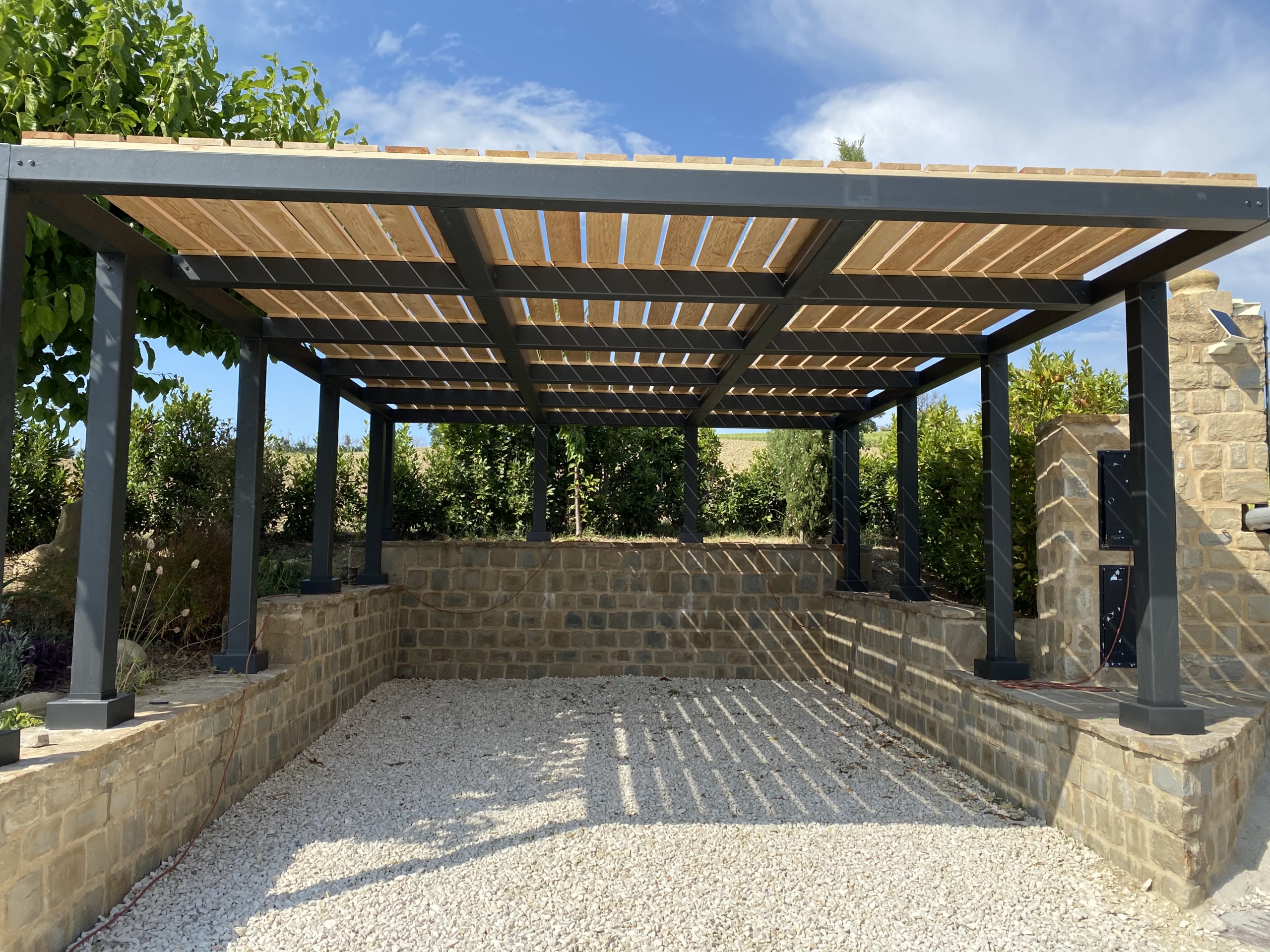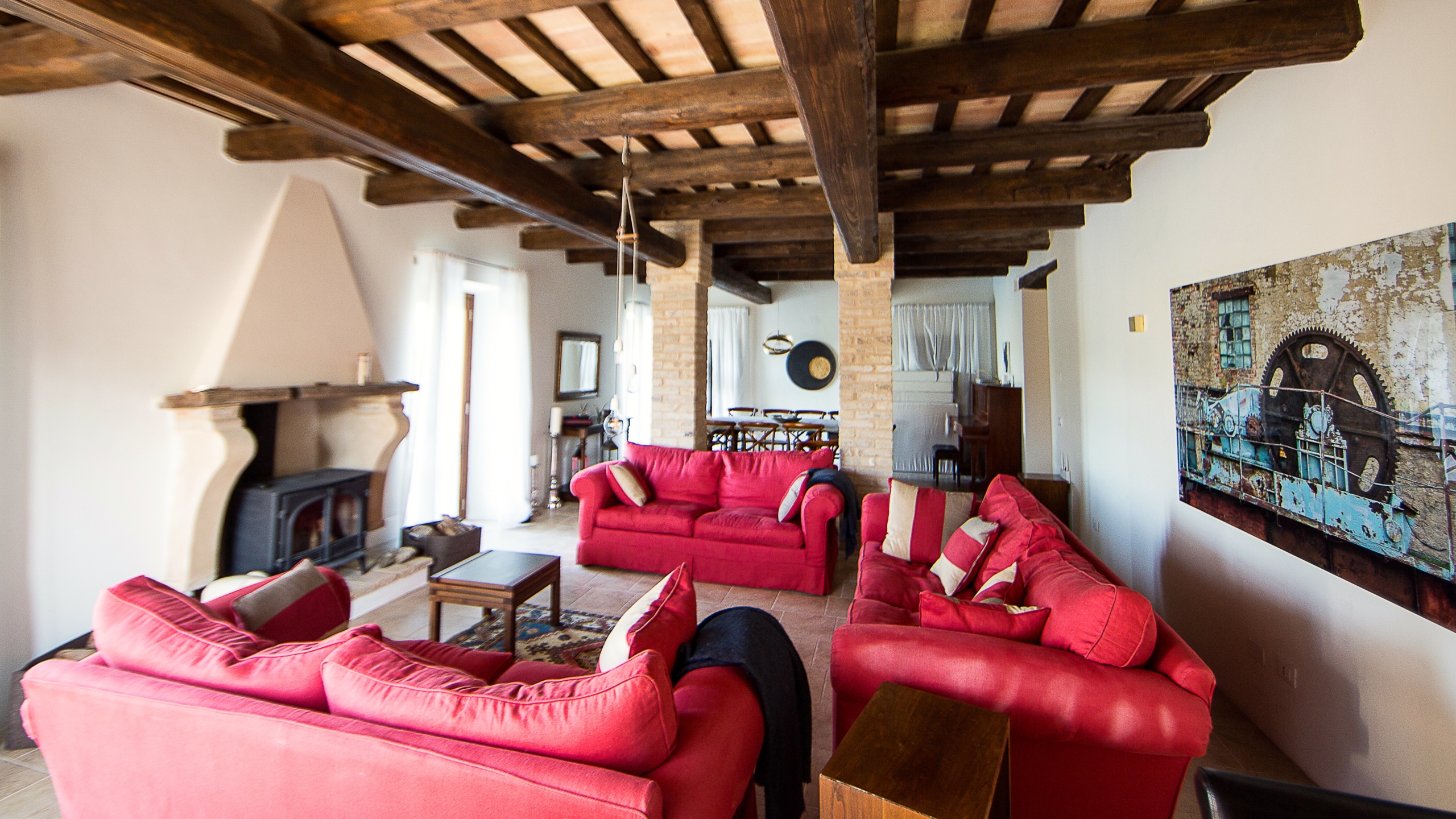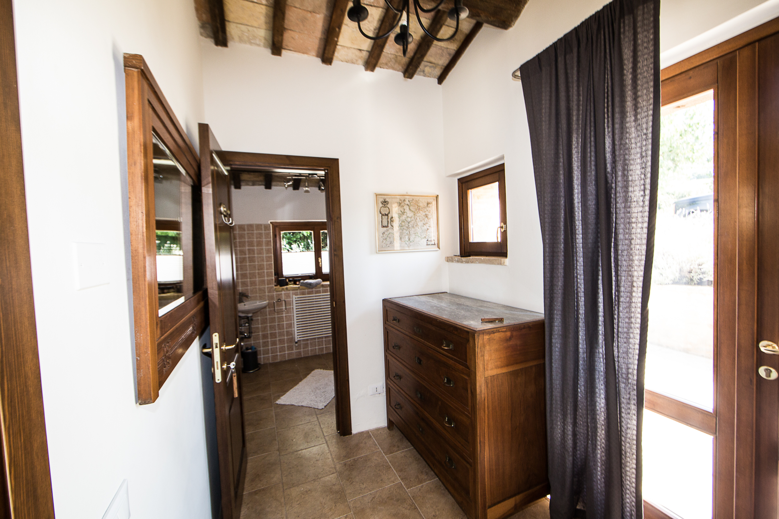 Die rustikalen Charakteristika, welche typisch für die Marken sind, wurden beibehalten. Einen modernen Eindruck gewinnt das Haus durch die Bepflanzung und die Struktur der Außenanlagen. Sie erreichen das Haus bzw. das Kieselrondeel und den Lavendelgarten durch einen privaten Zufahrtsweg mit prächtigem Eingangstor.