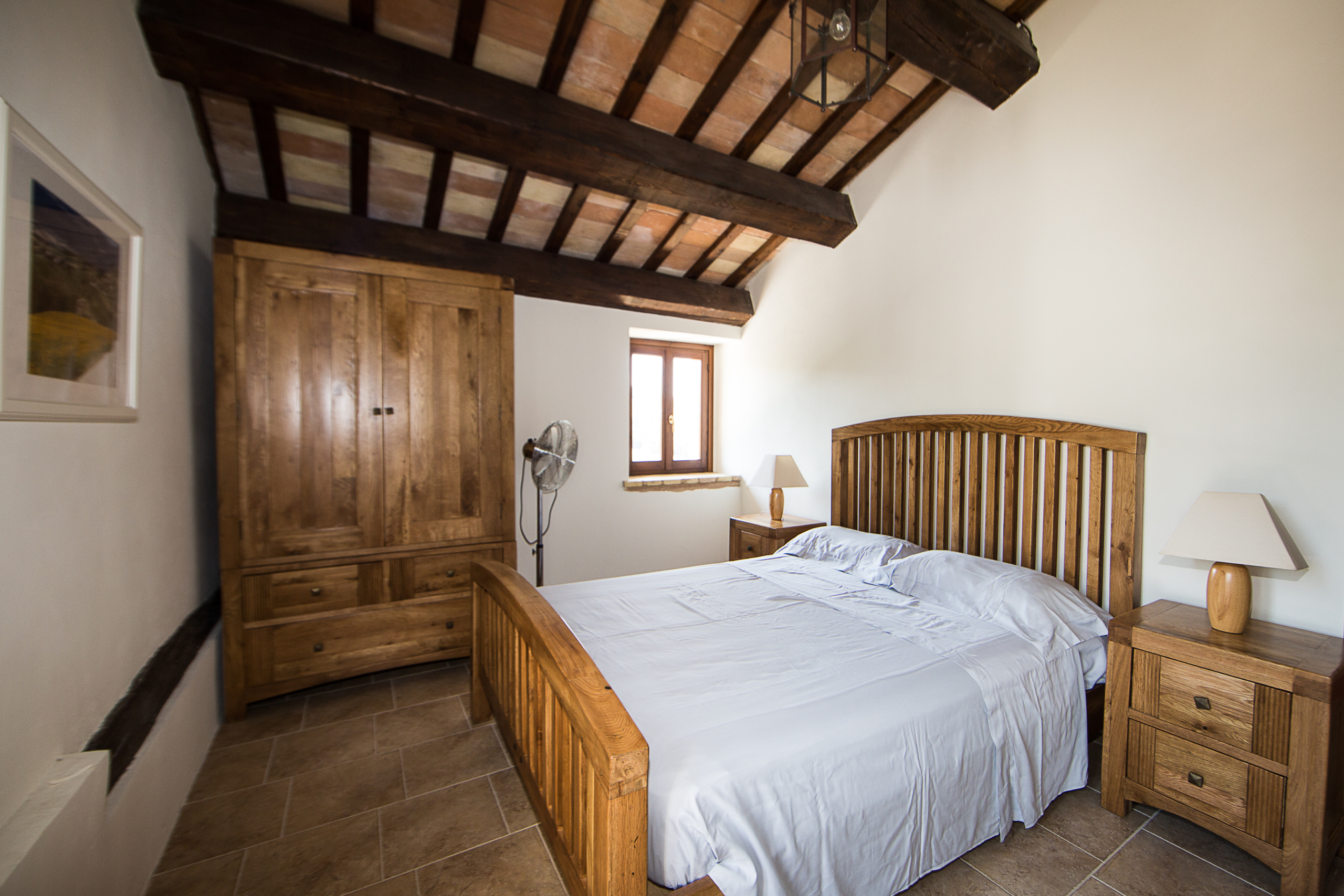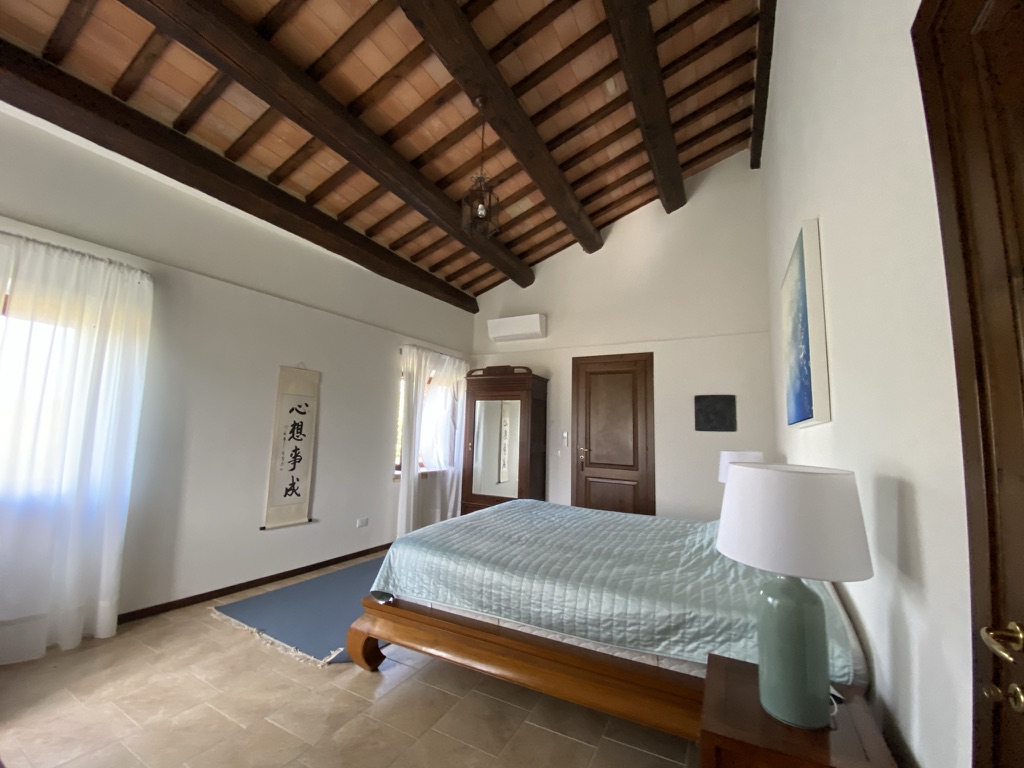Die erste Etage, ebenfalls mit Deckenholzbalken, hat vier Schlafzimmer und zwei Bäder. Das Elternschlafzimmer verfügt über ein eigenes Bad mit Toilette. Eines der Gästezimmer verfügt über einen großen Balkon. Alle Heizsysteme (Fußbodenheizung) sind getrennt und können separat aktiviert werden.