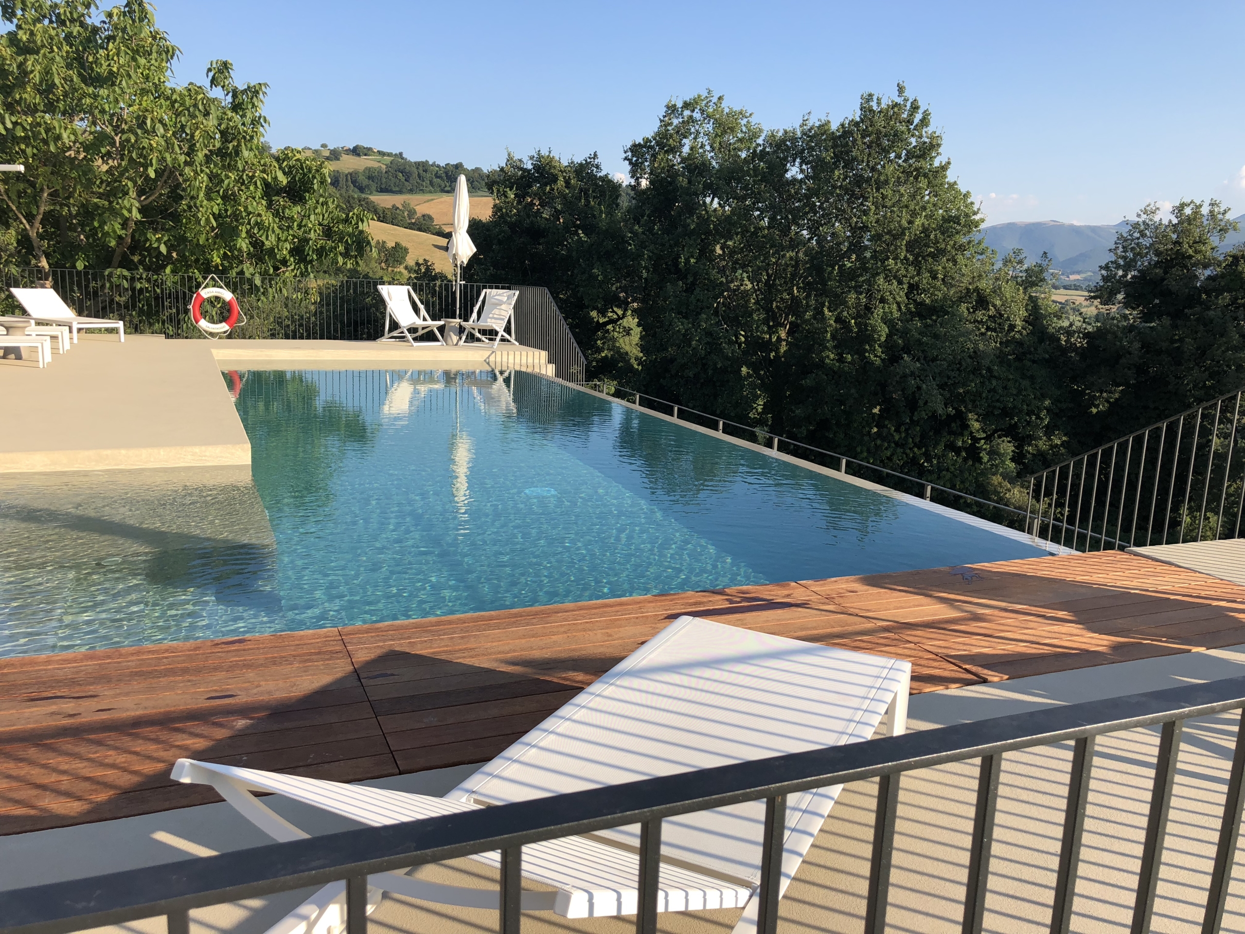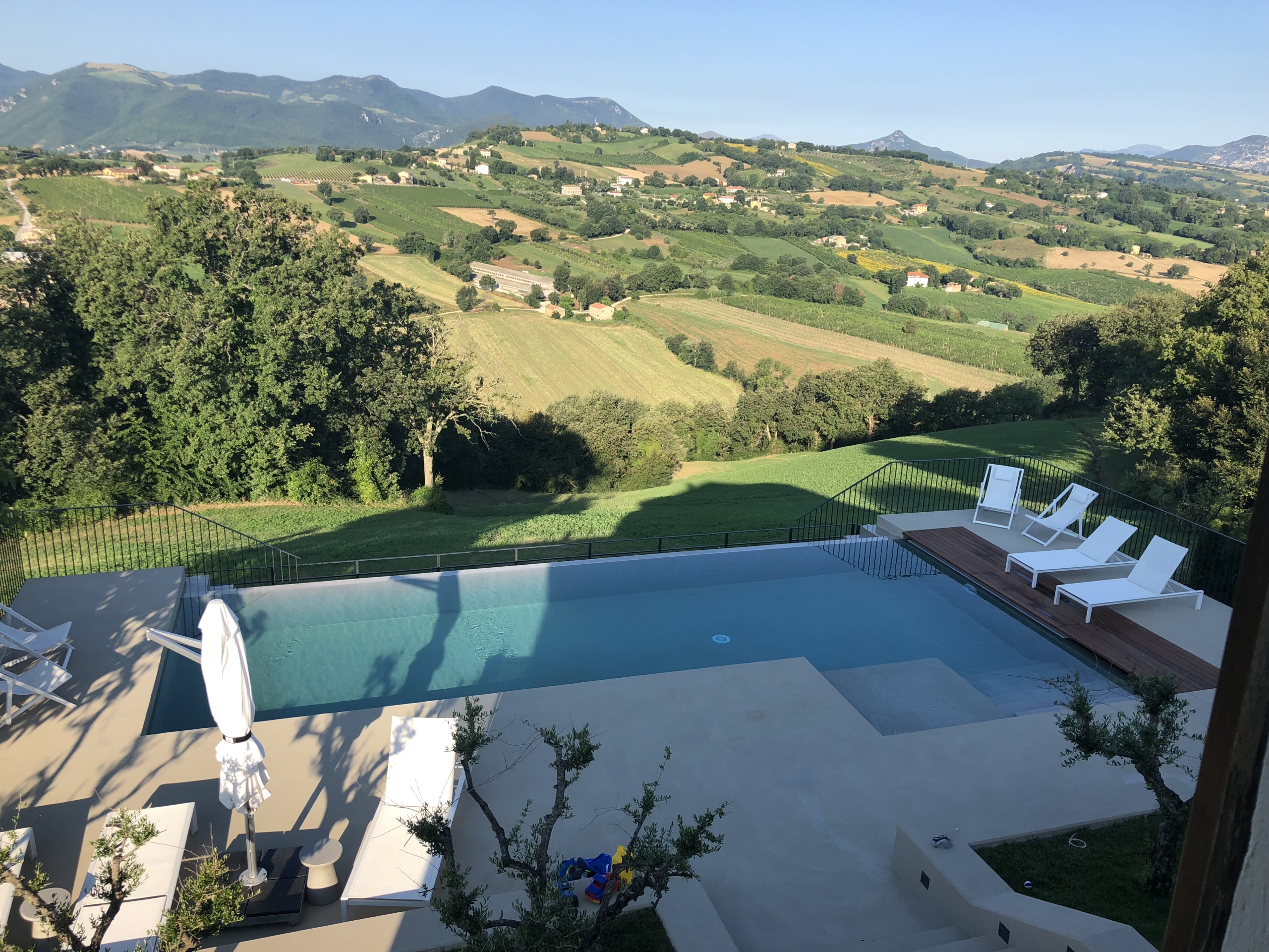 Der 15 Meter lange und 5 Meter breite Infinity-Pool mit beheiztem Wasser sowie atemberaubendem Blick zum Monte Vicino, die Umgebung sowie die Sauna mit Blick ins Grüne laden zum Relaxen ein. Das Haus befindet sich auf dem Land, 10 Minuten von den pittoresken Dörfern Cupramontana und Apiro, 35 Minuten vom Flughafen Ancona und 1 Stunde von den Stränden Sirolo bzw. Senigallia entfernt.