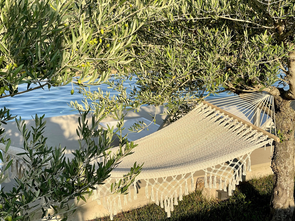 Das Außengelände ist umgeben von einer Mischung aus Obstbäumen, Zypressen und Olivenbäumen sowie einem prachtvollem Lavendelgarten.